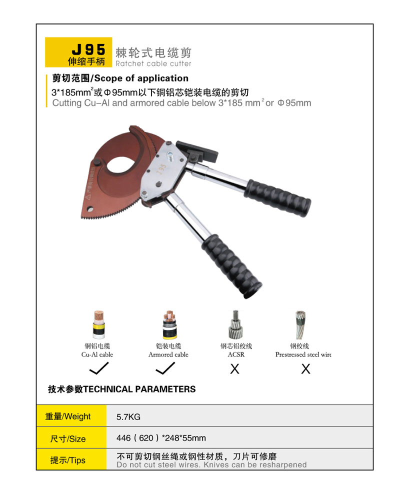 XLJ-D-500伸縮手柄棘輪式電纜剪