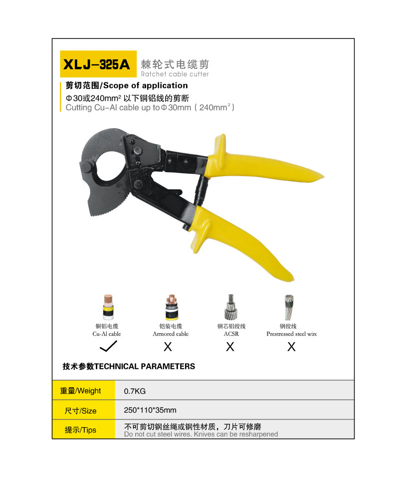 XLJ-D-300棘輪式電纜剪